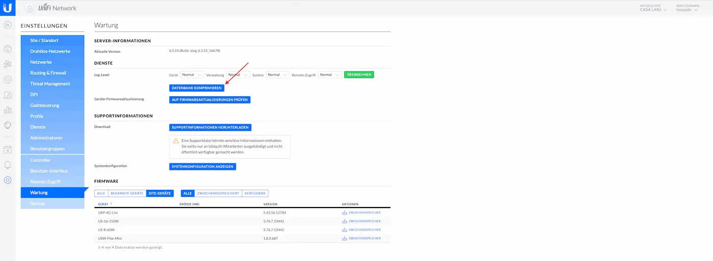 Falls etwas einmal schief laufen sollte, ist es gut ein Backup seiner Einstellungen zu haben. Ich lade mir vor jedem Unifi Controller update die aktuelle Backup Datei auf meinen Rechner. Nach ca. einer Woche lösche ich diese wieder, wenn ich merke, dass alles mit dem aktualisieren geklappt hat.